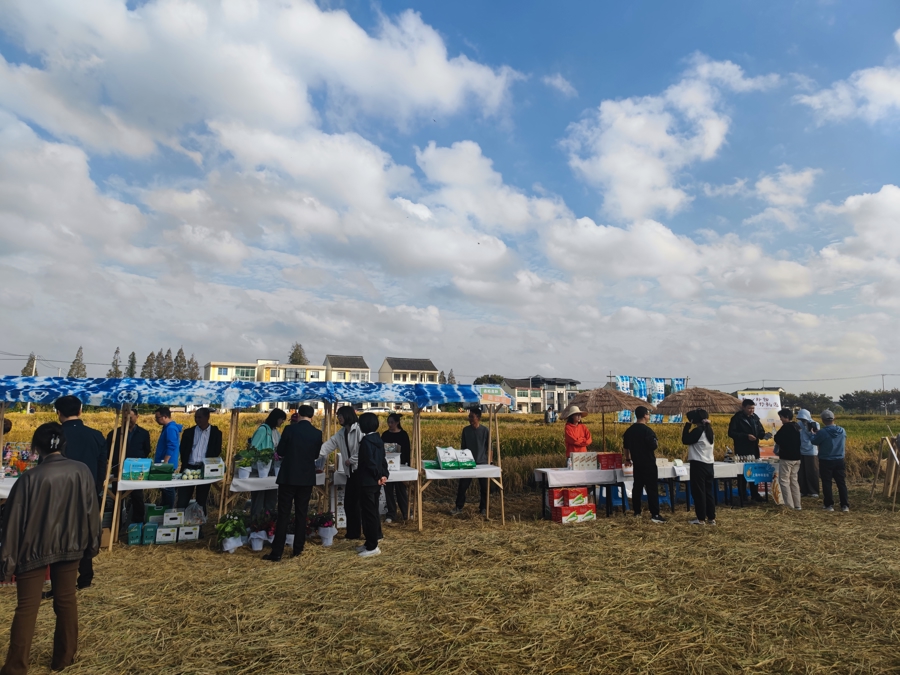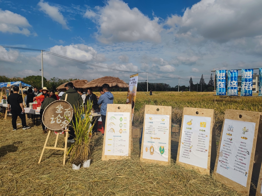 音乐人以稻浪为背景弹唱,观众席地而坐,聆听秋日大地的韵律;亲子家庭在手作区体验稻草编织、稻田绘画,让农耕文化在互动中传承;天幕之下,市民围炉煮茶,品尝农户现做的米糕,闲话丰收;市集里,米乳咖啡、米乳面膜等稻米衍生产品吸引游客驻足。现场还设有“坐而论稻”直播间,由中科荃银专家讲解稻种知识,实现“边买边学”的消费新体验。