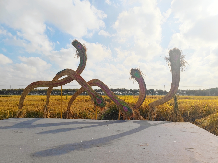活动特邀潮流艺术家纳豆Nato、独立艺术家吴狄联合创作大型稻田艺术装置《尾巴乐园》。作品以凤凰尾羽为灵感,用彩色稻草编织出绚丽的稻穗造型,在广袤田间栩栩如生,成为游客争相拍照的“网红”景观。