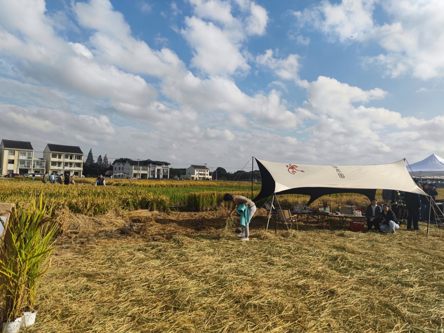 10月25日上午,金山上海湾区高新技术产业开发区中科荃银公司育种基地内,稻浪翻金,乐声飘扬,高新区社区主办的“遇‘稻’高新”主题活动在此拉开帷幕。在这里,金色的稻田不再只是丰收的象征,更成为“文旅农商体展”深度融合的体验现场,吸引众多市民走进田间,感受科技与艺术赋能下的“新田园主义”。