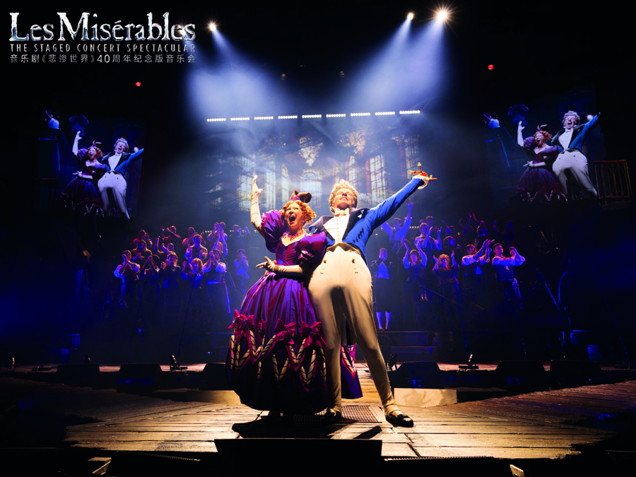 图为音乐剧《悲惨世界》40周年纪念版音乐会世界巡演剧照