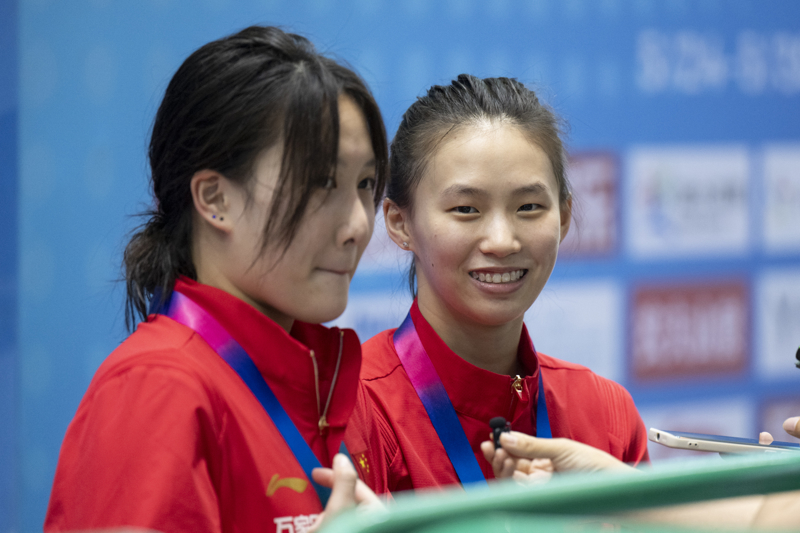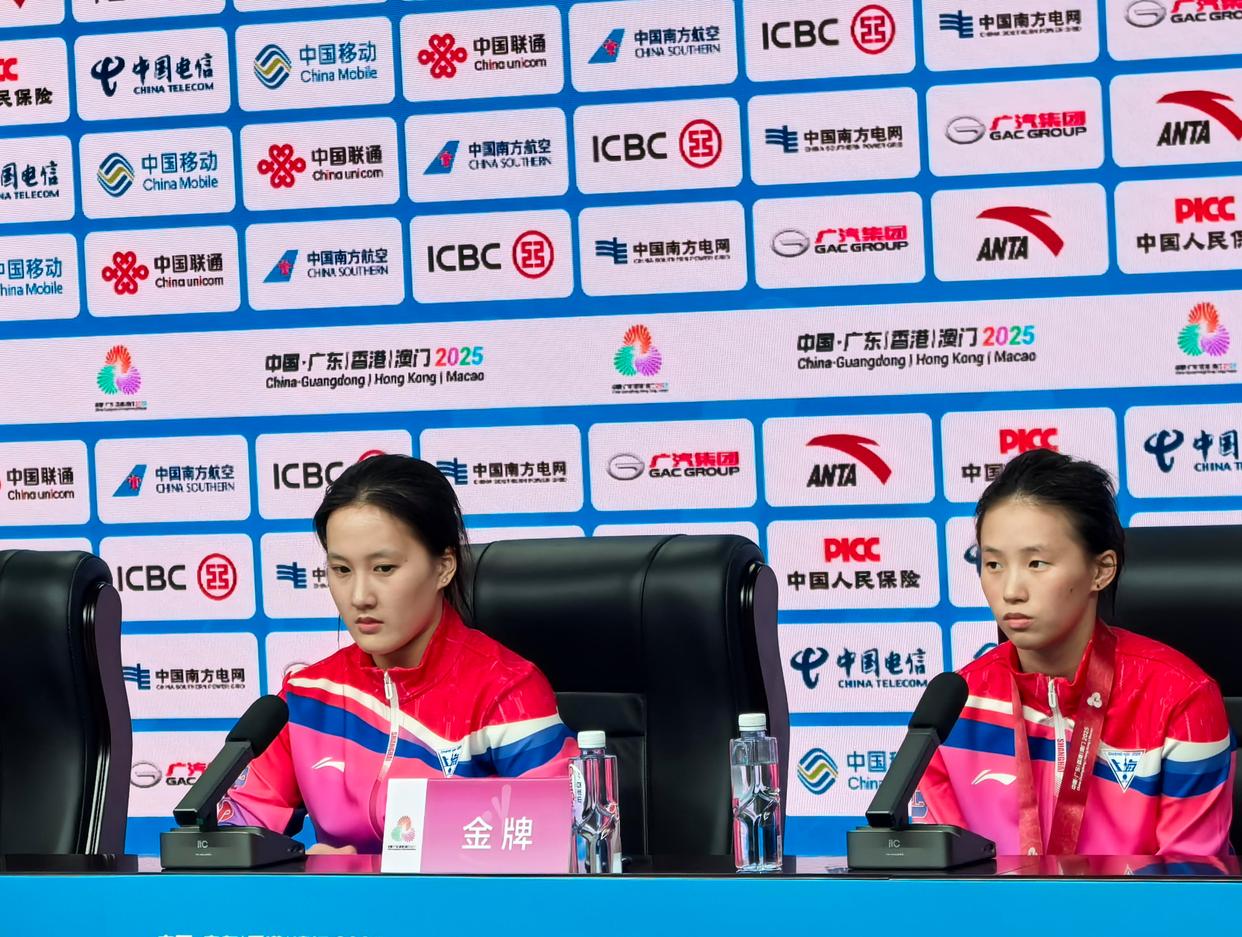 图为陈芋汐(右)/掌敏洁在赛后新闻发布会上。新华社记者马思嘉摄