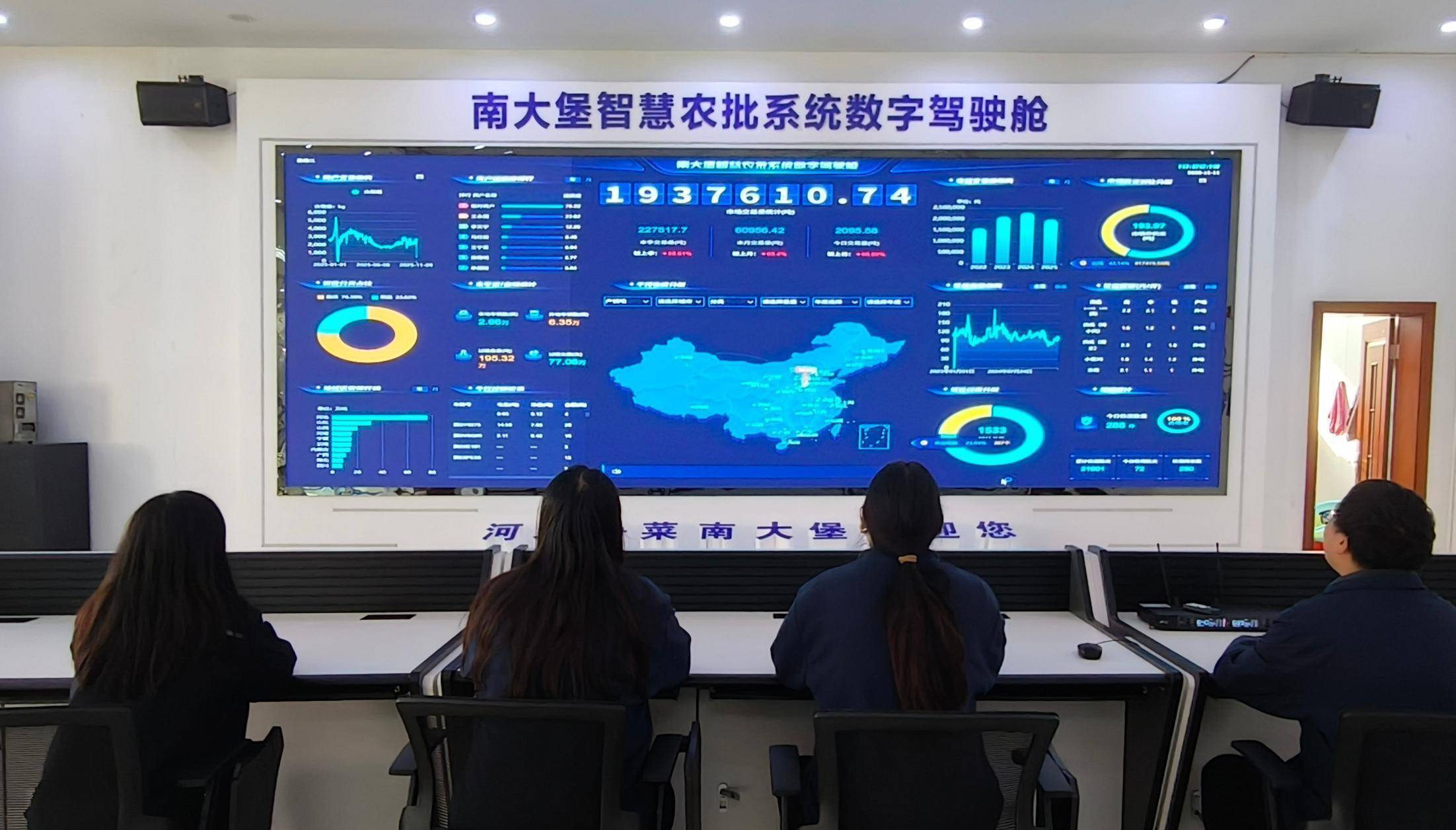 南大堡蔬菜市场使用智慧农批数字驾驶舱监测市场交易情况。李岩岩摄